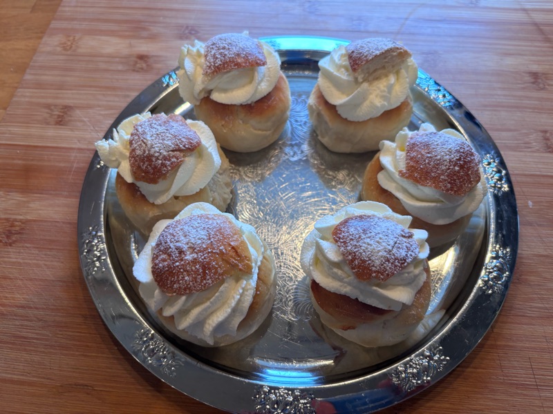 I dag är det väl eldorado för alla semmelälskare, även om många fler än maken har startat avsmaknings menyer av semlor långt innan Fettisdagen. Fast om man skall vara riktigt petig så är det nu den stora prövningen börjar för enligt kristen tradition så gäller det att äta upp sig idag för nu vankas 40 dagar med återhållsamhet vad beträffar mat och dryck fram till påsk i det vi kallar fastan. Så passa på och njut av de goda semlorna i dag eller du kanske föredrar att äta dem som hetvägg, dvs på en tallrik med varm mjölk ja sederna ar många. Jag vet en iallafall som kommer att äta och njuta av en god semla.