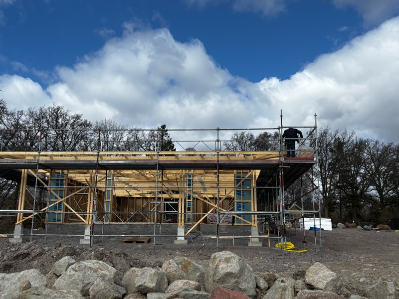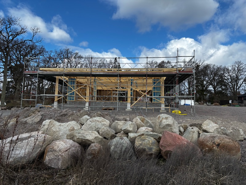 Det är väl inte utan att vi har blåst bort här på Öland och när sedan Dave drog in så har det fullkomligt eskalerat. I går eftermiddag började vinden så sakta att ebba ut och tog en sväng ut till tomten för att kontrollera om det påbörjade huset stod kvar och det var ingen tvekan allt stod på rätt plats och inga brädor hade flugit i väg. Det var inte utan att det kändes lite lockande att känna på vattnet och mentalt börja ställa in sig på bad, en granne till oss hade hade badad på påskafton så 5,5 grader i sundet kanske är start temperaturen.