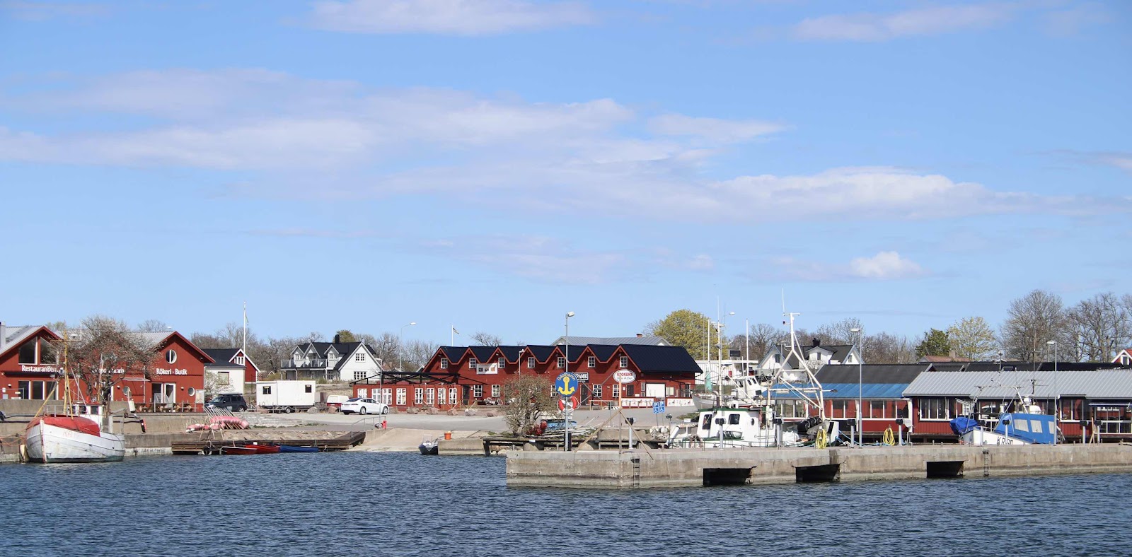 Hamnen i Byxelkrok genomgår en total make over. Det råder full aktivitet men inte av båtfolket. Skrapet ett grävskopor rasslar bland de stora stenblocken. Trots det omfattande arbetet med pirar, bryggor och ställplatser så rustas det för sommarens turist anstormning. De små pittoreska sjöbodarna pysslas om för försäljning och utställningar. Cykeluthyrningen börjar komma på plats och finns tillgänglig. Det blev ingen lunch på Restaurangen utan vi fick nöja oss med medhavda mackar. I solen går det bra också.