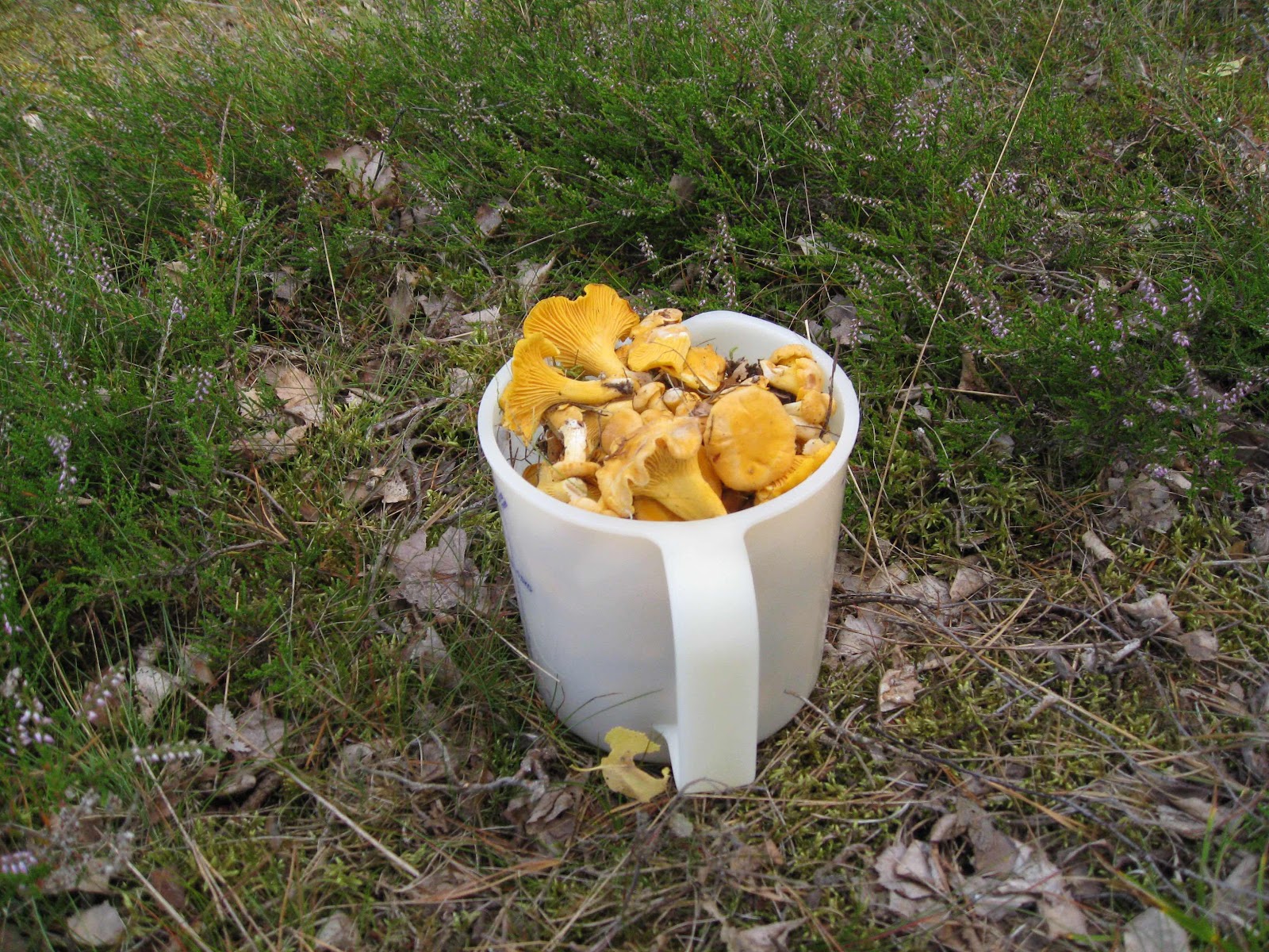 Nej riktigt så var det faktiskt inte, det var nog mer än önskedröm.( bilden var från 2017) Jag har sett många som lagt upp bilder på Facebook på sommarskörden av kantareller. Så det var väl bara att ge sig i väg ut och titta efter skogen gula guld. Jag har en liten meditationsskog som jag brukar strosa runt i och bara stirra ner i marken och inte tänka på något alls. Skog och skog, här på Öland finns inga djupa smålandsskogar men man får njuta av det lilla. Tror ni att jag hittade några kantareller ? Nej och inga andra svampar heller. Det är knaster torrt i marken, det fullkomligt krasar under fotsulan när skorna trampar ner i marken. För mig är det ingen big deal om det finns svamp eller inte, bar att få strosa runt i ensamheten är så avkopplande och härligt. Jag hittar alltid något som jag kan fundera över. För något år sedan hittade jag en ringmärkningsring som jag skickade vidare till ringmärkningscentralen på Naturhistoriska riksmuseet . Under den här promenaden hittade jag ett ägg som låg inbäddad i mossan. Först trodde jag att det var en champinjon eller flugsvamp men sen såg jag att det var ett ägg. Jag tittade upp i trädtopparna men kunde inte se något bo, ja ni ser alltid är det något att fundera över under skogspromenaden.