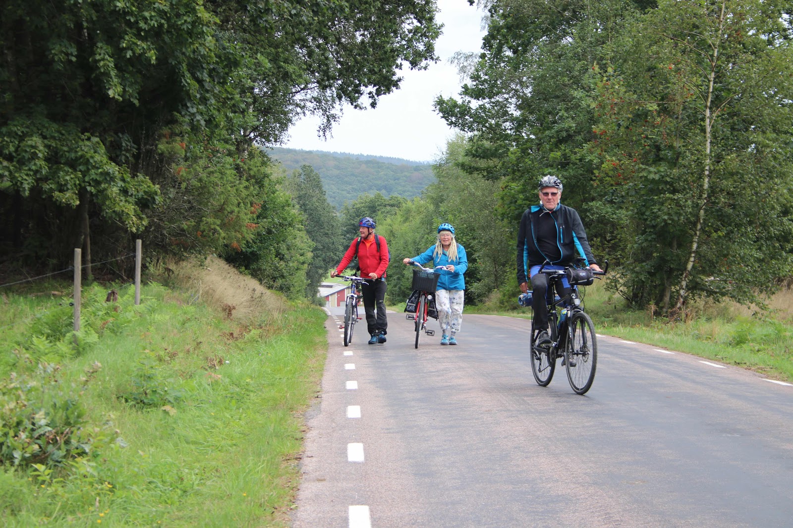 Vi lämnade hav och vind och tog oss via bil in i bokskogen mot Ärstad vingård. Fantastiska grusvägar som slingrar sig bland bokskogen på ena sidan och tallskogen på den andra. Även om rundan vi inte var så lång så var det backe upp och backe ner men mest uppför kändes det som . Efter ett tag kom vi fram till Sinnenas SPA där lugnet och naturens grundelement skall vara en plats för återhämtning och som en läkande kraft. En riktig naturupplevelse i en magisk miljö. I anslutning till de iskalla källorna ligger flera vedeldade bastu så efter värmen är det bara att hoppa i plurret. Det smakade ljuvligt med goa mackor i gröngräset. Efter lugnet på sinnenas spa trampade vi lugna till sinnet vidare mot okända mål.