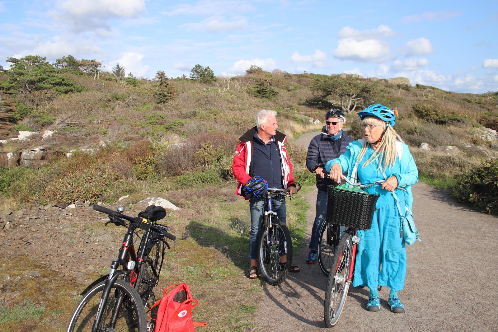 Vilket är bäst ost eller västkusten? På den frågan passar jag faktiskt, var plats har sitt.jag som älskar den östra sidan av vårt vackra land kan ändå tycka att den västra sidan har något vidunderligt över sig. Vi tog oss över till västkusten och närmare bestämt Varberg, Sveriges 43 största tätort med ca 35 tusen invånare. Här finns härliga sandstränder i Apelviken där svågern och svägerskan har ett underbart sommarhus med sandklitterna runt knutet och havet brusande i bakgrunden. Vi bestämde oss för att cykla strandpromenaden från Apelviken in till centrum. Här har man verkligen lyckats med en strandpromenad som ger plats för både gående och cyklister, med havet ett stenkast från vägen och på andra sidan berghällar som böljar sig av vind och vatten. Vi passerade det gamla sanatoriet som numera har byggts om till hotel och spaanläggning och bostäder för att stryka utmed murarna till Varbergs fästning som anlades i slutet på 1200 talet. Det blir 5 stjärnor av 5 för Varberg.