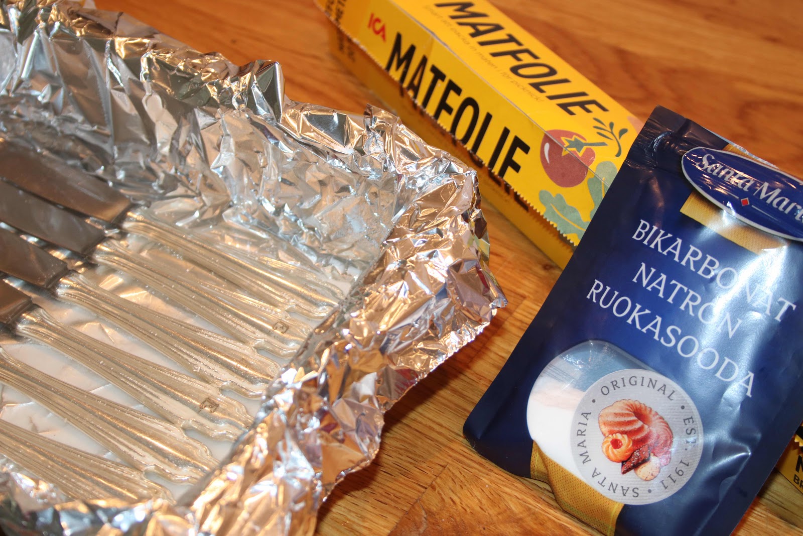 I stort sätt varje vecka framöver firar vi någon speciell dag och i dag är det kanelbullens dag. Enligt forskarna står kanelbullen för hemtrevnad, omtanke och kärlek och gemensamhet så då är det väl bara att smaska i sig en bulle eller två. I går fick maken ett ryck och började röja i den så kallade kattvinden. Där står ett antal kartonger och grejer som tillhör barnen. Lådorna innehåller pussel, medaljer, skolfoto och en del böcker. Men hör och häpna hittade jag en drös med silverbestick. Det står visserligen ett E på dem, så de skulle kunna vara min mammas, hon hette Elsa men jag vet inte riktigt var de kommer från. Problemet var att de inte så så roliga ut, ni vet hur silver kan bli, mörka och trista. Jag började med att putsa, då slog det mig att jag vid ett annat tillfälle la besticken i en form klädd med folie och sedan strödde jag på bikarbonat och sedan på med kokhett vatten. Kemi på hög nivå och ett litet husmorstips som funkar väldig bra.