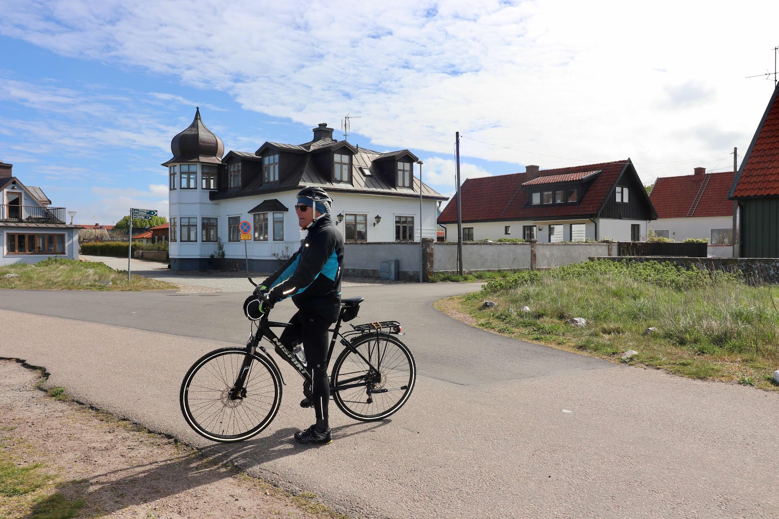 Från Hov rullar vi lätt ner mot kusten till Torekov på slingrande vägar mellan guldgula rapsfält. Jag skrattar lite för mig själv när vi cyklar utmed kusten och ser badbryggorna som går ut i havet. Scenen från filmen eller om det var ett avsnitt från Solsidan, när alla skulle ner och ta ett morgondopp och bryggan fylldes på i en ända lång kö eftersom man skulle ha lite privat tid i vattnet, vid ett ev. nakenbad kommer upp i mina tankar. När maken och jag cyklade runt Torekov var det definitivt inga som badade temperaturen låg runt 14 grader och i havet kanske det var 9-10 grader. Däremot var Kennelklubben ”Mops” ut och gick med ett tjugotal grymtande små mopsar som fick njuta av den härliga havsbrisen. Det är något visst med kustorter, det råder en viss stillsamhet under tiden då semester säsongen inte har inträffat. Finns det en hamn så brukar det dock vara lite puls och så var det även i Torekov annars var det många hus som såg lite tillbommade ut. Jag kan tänka mig att det under sommarperioden sjuder av liv och rörelse i denna vackra tätort på Bjärehalvön med Hallands Väderö strax utanför.