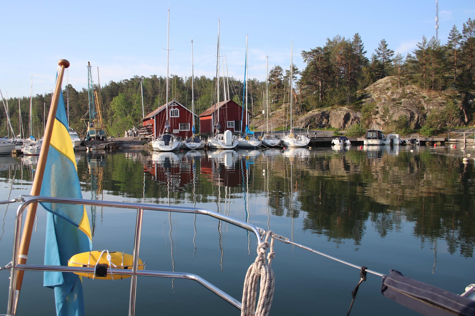 Om jag skall vara lite gnällig så passerar den här dagen som vilken dag som helst. Det är inte ens idé att hissa flaggan i ösregnet och vindstyrkan som har ökat upp till 20 m/s i byarna tar musten ur den bäste. Desssutom går tankarna hela tiden till barnbarnet som har åkt in och ut på sjukhuset för att få ordning på sin spruckna knäskål den här veckan. Nu har visserligen reserestriktioner släppts och vi skulle kunna ta oss upp till Stockholm för att hälsa på honom, även om inte familjen där uppe är drabbade av Corona så känns det lite ”risky” att ta sig upp till huvudstaden där smittan kanske är som värst. Hur som helst så firar vi national dagen med en liten vink och känsla av att det till nästa år blir betydligt trevligare. Jag plockar istället fram bilder från den 6:e juni genom åren, som 2013 då vi gjorde vår första seglats med vår nya fina båt och träffade alla barn och barnbarn i Saltsjöbaden. Jag tror inte att vi har haft regn någon gång under alla år, visserligen har vi varit inblåsta men inget regn.