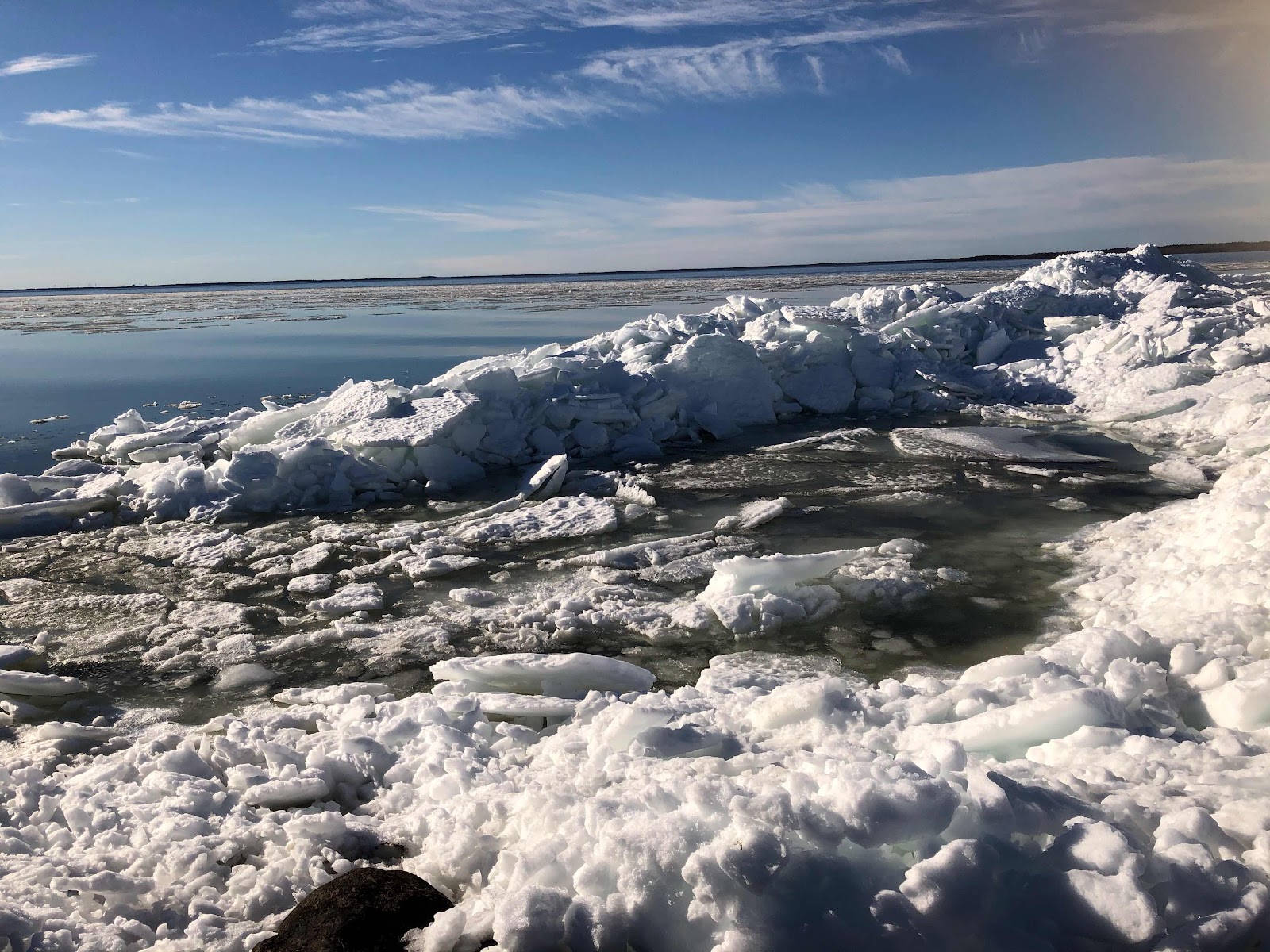 Ett märkligt fenomen utmed kusten vid Ispeudde fyr. Trots att Kalmar kunde ståta med varmast i landet i veckan så tornar dessa gigantiska isblock upp sig ett tiotal meter från stranden. Havet låg helt spegelblankt och de lösa isflaken guppade så försiktigt i solvärmen, stillheten var total endast ett bubblande sprakande ljud hördes från isflaken som låg och skavde mot varandra, när bergen började röra på sig. Längst ut på udden ligger Ispeudde fyr som är en av Ölands nio fyrar. Det är nästa magisk att tänka på vad fyrarna varit med om och fått utstå i ur och skur i solsken och stormar. För en sak är iallafall säkert variationer i väderförhållanden tillhör vardagen här på Öland. Vänder man näsan 90 grader så får man återigen upplev våren och kanske en liten förhoppning av sommarbarn, för oss som inte har anammat trenden med vinterbad.