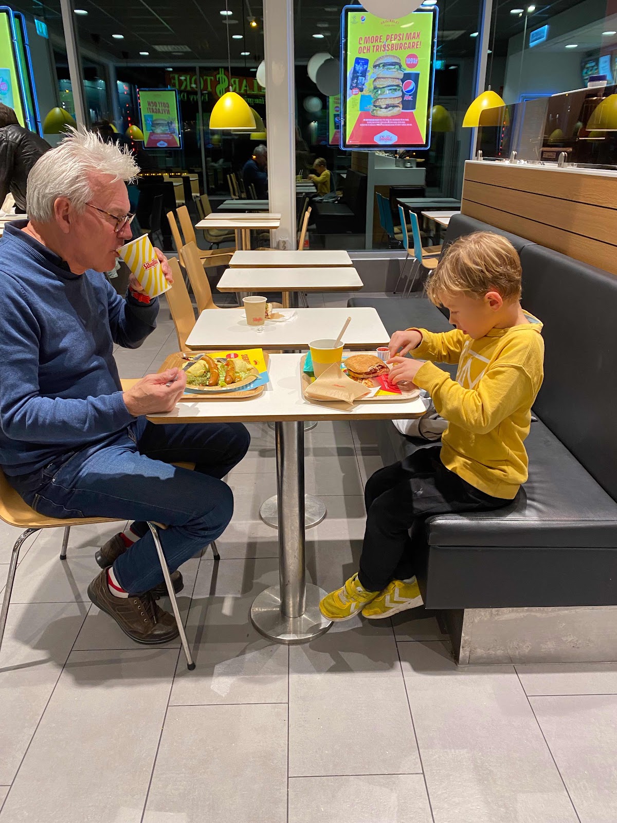 Barnbarnet går på simskola i Borgholm och en gång innan pandemitiden så följde vi med honom till simhallen. Efteråt frågade vi om han ville gå på restaurang och äta en bit mat och det vill han så klart men döm om vår förvåning när det endast fanns ett tillgängligt matställe öppet och det var Sibylla mitt i det nybyggda köpcentrumet som ligger utmed stora 136:an här på Öland. Så det fick bli den ”restaurangen” och det visade sig vara en riktig lyckoträff, vi inmundiga både korv och pommes, eller som vi säger i Småland ”kåv” . Efter detta fantastiska besöket på restaurangen har det blivit ytterligare besök, men numera kallar barnbarnet det för hamburgerrestaurangen så en liten förändring har skett från, från ”kåv” till hamburgare men likaväl så är det favoritrestaurangen alla kategorier, där har vi lite olika uppfattningar barnbarnet och vi.