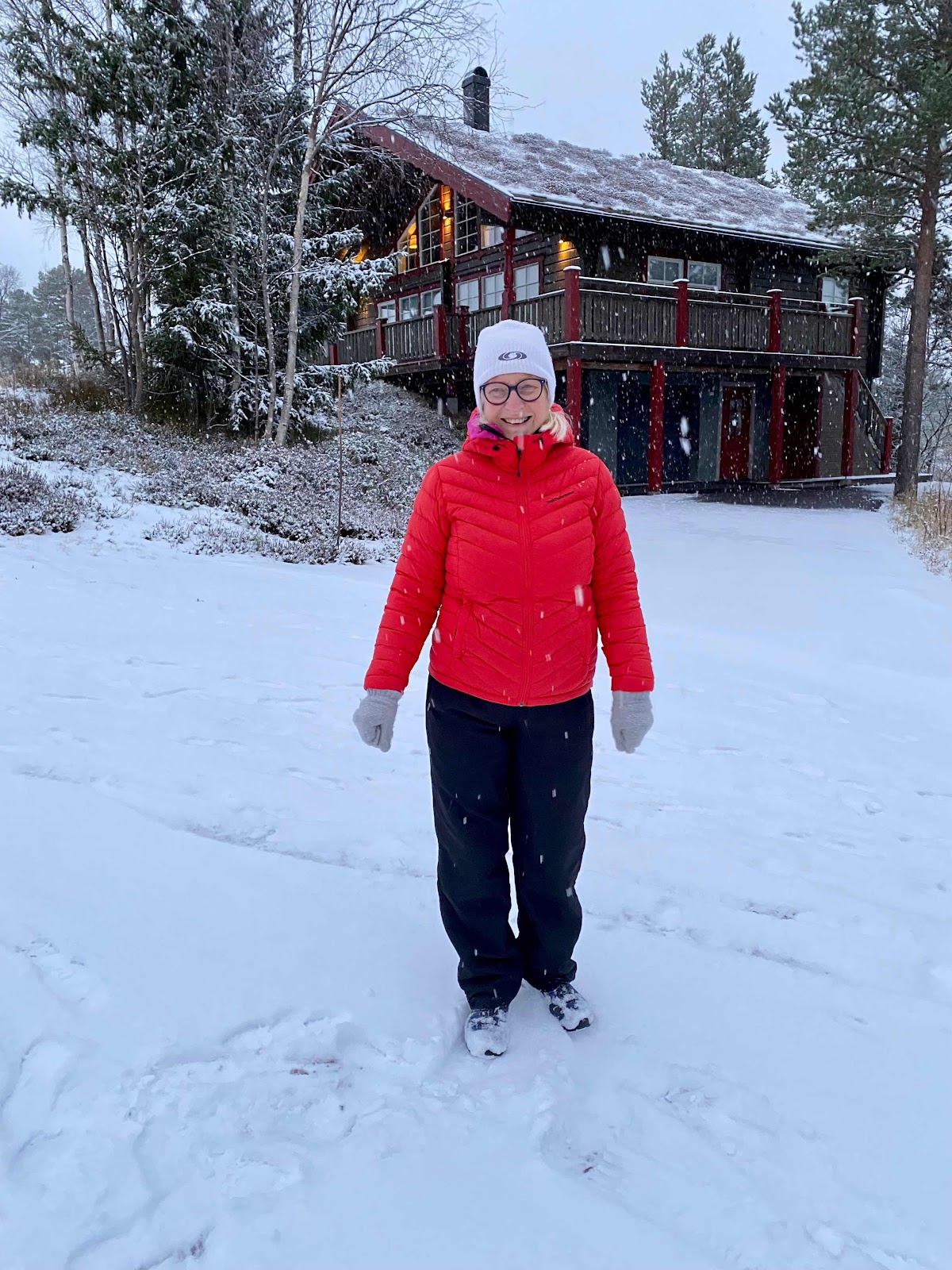 Sjunde november och snön vräker ner. Vi var på en tur upp till fjället häromdagen i strålande sol, men på hemvägen ändrades temperaturen drastiskt och vi förstod att nederbörd var på gång och mycket riktigt, i går vaknade vi till ett vitt snötäcke på marken. Temperaturen har legat runt nollan ett par dagar så snökanorna har börjat preparera i backarna, men i går stod de stilla medan snön kom den naturliga vägen. I dag har vi minus fem grader, men vintervädret är inte så pålitligt så om några dagar är det säkert barmark igen. Trots att de flesta kör med vinterdäck så inträffade ett par incidenter på de glashala vägbanorna när höstlovsfirarna skulle vända hemåt. Vår bil fick bli stående och vi gav oss ut till fots i det ymniga snöfallet, det kändes nästan som att befinna sig mitt i ett julkort.