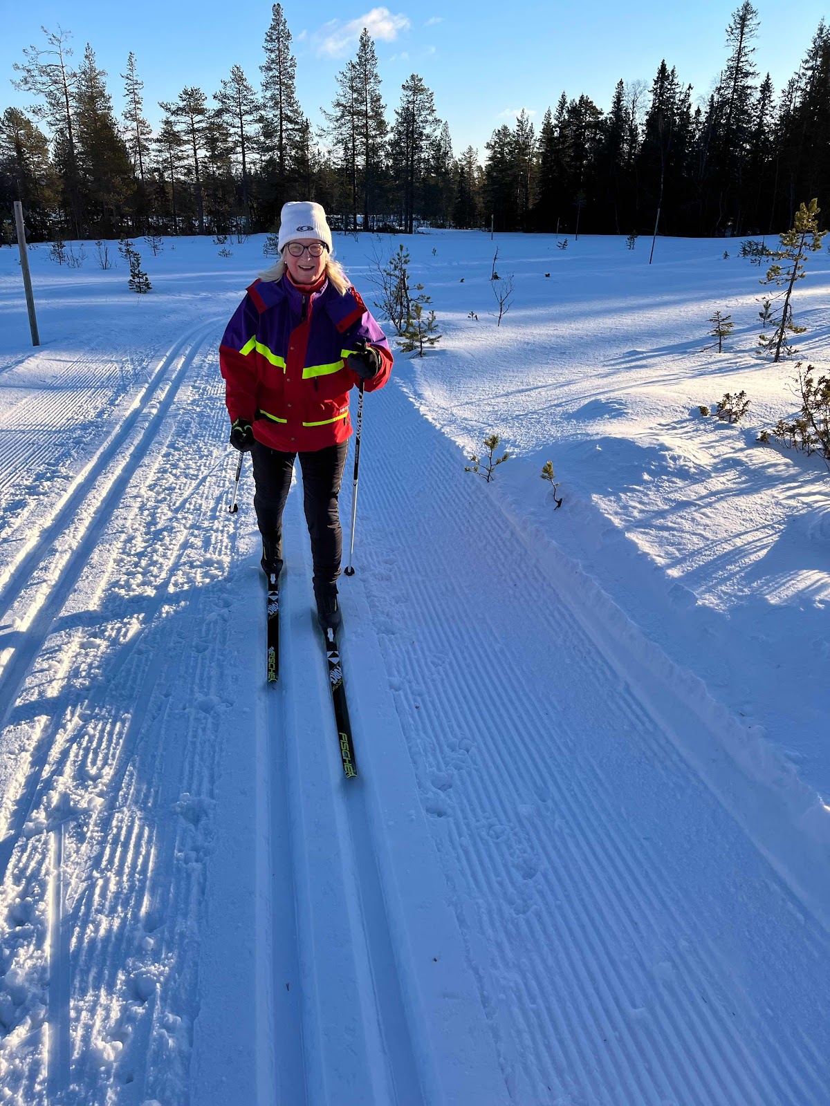 När vi hade båt var vi alltid noga med att kolla väderleksrapporterna för vädret till havs kan ändra sig snabbt, trots det fick vi erfara väderomslag på några minuter som definitivt inte gick att utläsa från väderleksrapporten. Precis lika viktigt som det är på havet är det i fjällen, det fick vi erfara i går kväll . Då var det vindstilla och stjärnklart och vi skulle bara köra en sväng till Tandådalen, då som i ett trollslag började det snöa och därefter blev det snöstorm. Nu var det ingen fara för vi var inte ute utan satt i bilen, men tillbakavägen liknade mest ett vitt fält med oigenkännlig väg. Så vädret kan ändras sig snabbt både till havs och till fjälls. Trots det ombytliga vädret har vi åkt längdskidor som slingrar sig genom skog och mark, tyvärr tar det hårt på snön när det blåser och dessutom fick vi några plusgrader som töade bort en del av de fina spåren.