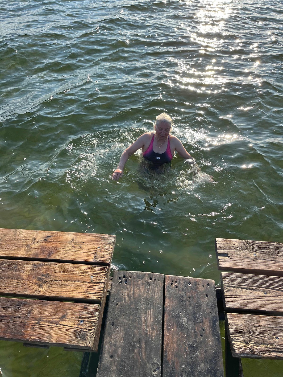 Att kalla sig vinterbadare är väl att ta i även om det blir bad långt in på hösten, men nu är iallafall första doppet för året avklarat. Dessutom var det väldigt sent in på säsongen, jag brukar starta i maj men nu fick premiärloppet bli pingstafton och det var tack vare våra entusiastiska bygrannar Anna och Jonas som fixar så att vi smidigt och lätt via den för året utbyggda bryggan kom i vattnet. Jag är så tacksam för denna lilla spång rakt ut i sundet. Så i går blev det kvällsdopp och idag på morgonen så där strax efter kl 6 förenades jag med vattnet som omslöt kroppen med lite kylslaget svalkande vatten. Finns det något bättre än en stilla morgon där havet ligger som en spegel och fågelsången runt omkring hörs som en kakafoni av ljud. I går kväll var det 19 grader i havet och i dag 16 så det är inte utan att det känns, men nu är jag på gång med härliga morgonbad.