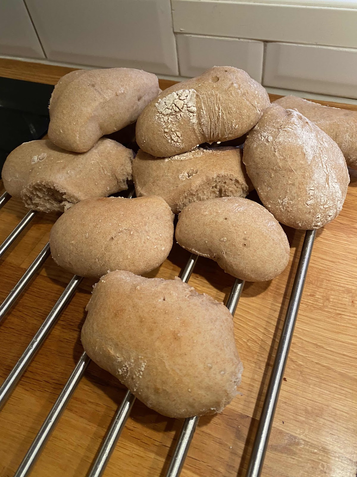 Nattjästa frallor låter väl lite konstigt man skulle kunna säga kalljästa eller långjästa, ja principen är den samma. Jag satte iallafall en deg på kvällen inte så genomtänkt precis för det visade sig att det fanns begränsat med mjöl i mitt förråd så det var bara att plocka ihop det som fanns, så därför blev det lite av varje. Det är väl egentligen det som är grejen med att baka man tager vad man haver som hon myntade den där Kajsa. I kylskåpet låg iallafall ett par tärningar med jäst och det är huvudsaken för att det skall bli en jäsprocess, jag hade kunnat ta min surdeg men den behövde ett par matningar till innn den bubblar på ordentligt . Hur som så blev det en plåt med frallor om får så oc jäsa i kylskåpet under natten och det var en strykande åtgång på dem.