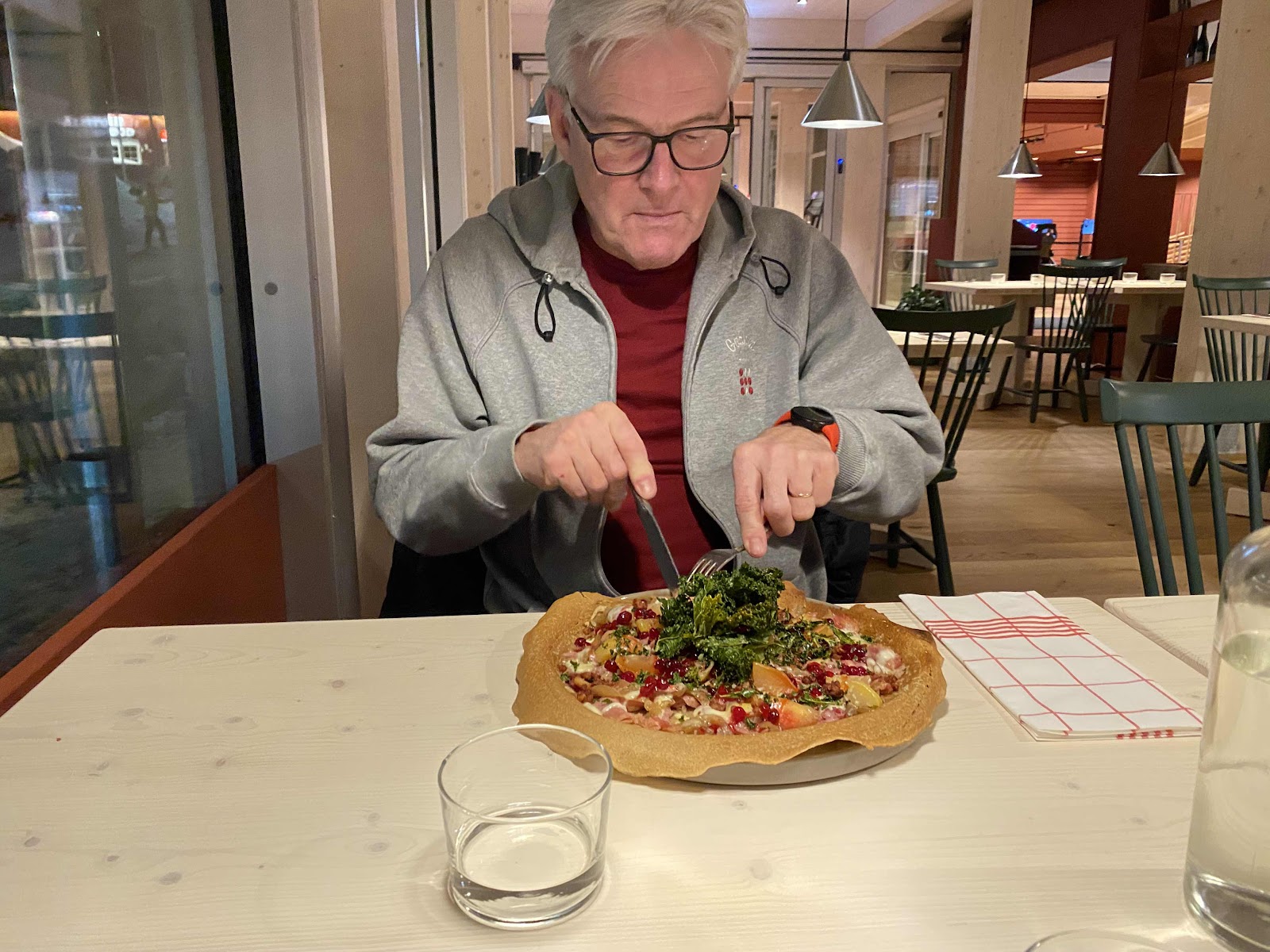 Vi har både åkt och gått förbi ombyggnaden av lokalen som tidigare inrymdes av Skistar vid Sälfjällstorget. Arbetet har pågått under en längre tid men nu har portarna öppnats upp till detta aktivitetshus. Nu kom vi förvisso på kvällen därför var det relativt lugnt och våra magar kurrade efter en dag i skidspåren så ögonen riktade sig mest till restaurangen. Men innan vi hann fram till restaurangen så kom det fram en väldigt trevlig ung man och frågade om han kunde hjälpa oss, vi såg kanske lite förvirrade ut men hur som helst så erbjöd han en visning av de nya lokalerna. Den stor bildskärmen visade aktivitet och framtida intressanta evenemang, dagen därpå skulle André Myhrer komma och hålla ett föredrag och så skulle det visas skidtävling på storbildsskärm. Den trevlig ynglingen visade oss den superfina lilla biografen som visar aktuella filmer både för barn och vuxna. För övrigt finns det playroom by Nintendo, spela simulatorgolf samt en andra massa aktivitet. Efter visningen beställde vi underbart goda galettter där mottot är närproducerat och hållbart. Så missa inte Sälenvision om du åker till Sälen.