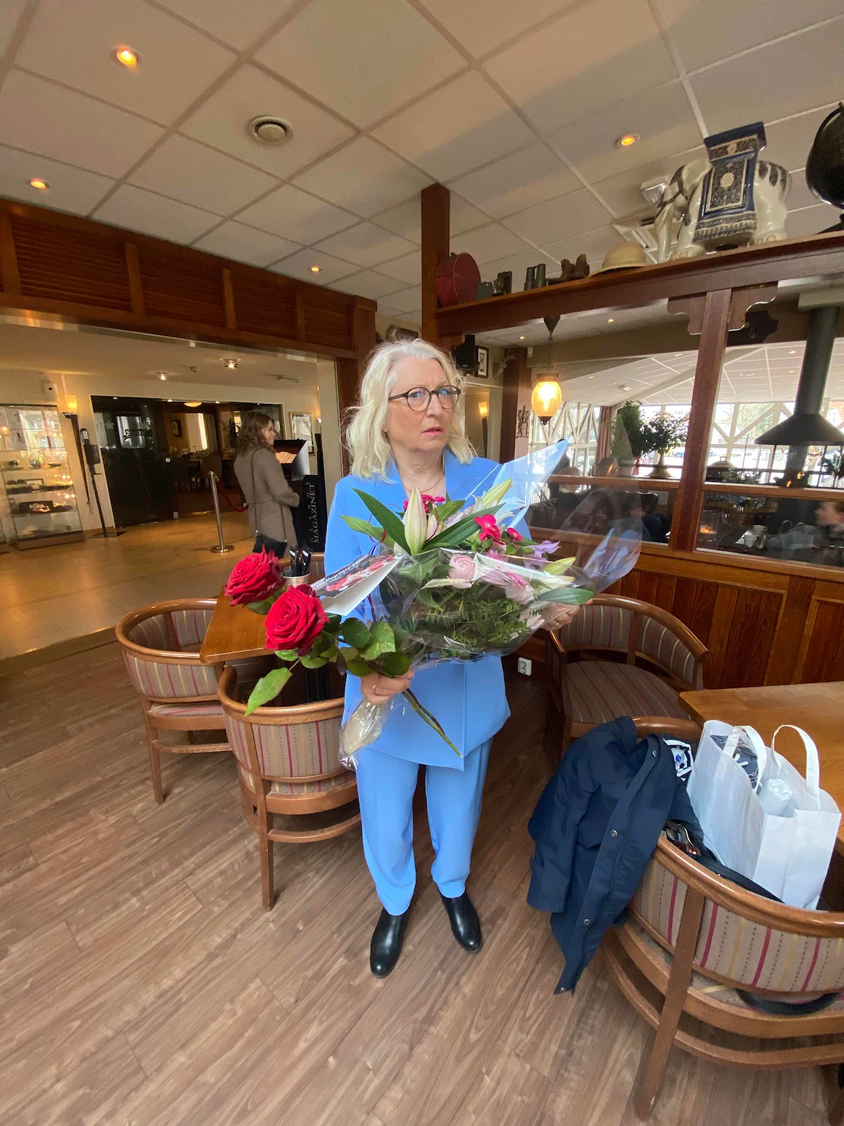 Så var då alla födelsedagar avklarade iallafall för oss här på Öland , nu återstår bara tösen i barnbarn skaran som på fyller år på Söndag. Jag hade väl tänkt mig en dag i solen med en god kopp kaffe och en smarrig kaka att mumsa på. Visst blev det både kaffe och kaka underbara blommor men någon värme kunde vi inte uppbringa utomhus iallafall. Dessutom har vi beställt ny trall till altanen så i arla morgonstund kom en stor lastbil med leveransen, så då var det bara att hugga i och bära 1 ton brädor. Det känns i kroppen idag vill jag lova, mörbultat i axlar och ben men det blev ett rejält träningspass och på kvällen firade vi med middag på Hotell Skansen för oss födelsedagsbarn som bor på Öland.
