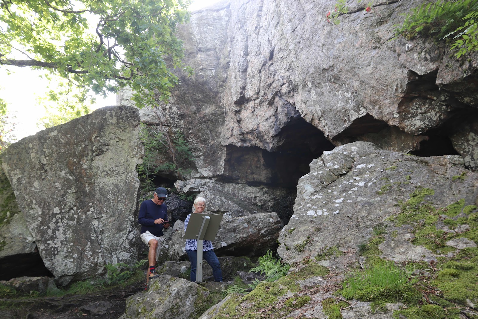 Nej vi har inte åkt dit igen men när vi var där på Ann Rosman resan för någon vecka sedan hade vi bestämt av vi skulle promenera på de branta bergshällarna till Nålsögat, Näckrosdammen, S:t Eriks grotta och offerlunden och så klart Lotsutkiken. Vi började rutten från Socitetshuset och vidare på den asfalterade vägen som leder upp mot de branta bergshällarna. Ni känner säkert till ordspråket ” genväg äro ofta senvägar” och det var precis vad det var som drabbade oss vi skulle följ vägen med skyltar men strax in till avfarten mot Nålsögat gick det en trappa eller trappa och trappa stenar lagda på varandra mot toppen av berget. Den rutten skulle vi inte ha tagit lite svår terräng att traska runt i men nu var vi ändå på väg så vi fortsatte mot Lotsutkiken för hur svårt skulle de vara att hitta grottan. Tillslut gav vi upp och bestämde oss för att gå ner mot stigen igen och vips så stötte vi på grottan där öborna gömde sig när en dansk/norske sjöofficer 1719 belägrade ön som då låg vid stranden. Nu är ligger den 30 m över havet. Myggen höll på att ta kål på mig så det kändes bra att ta sig ut mot det öppna havet och passera genom Nålsögat som är en smal passage mellan två branta klippväggar där man måste gå på tvären för att ta sig igenom. Trötta och hungriga avslutades dagen på Bergs konditori med både räkmacka och blåbärsbulle.