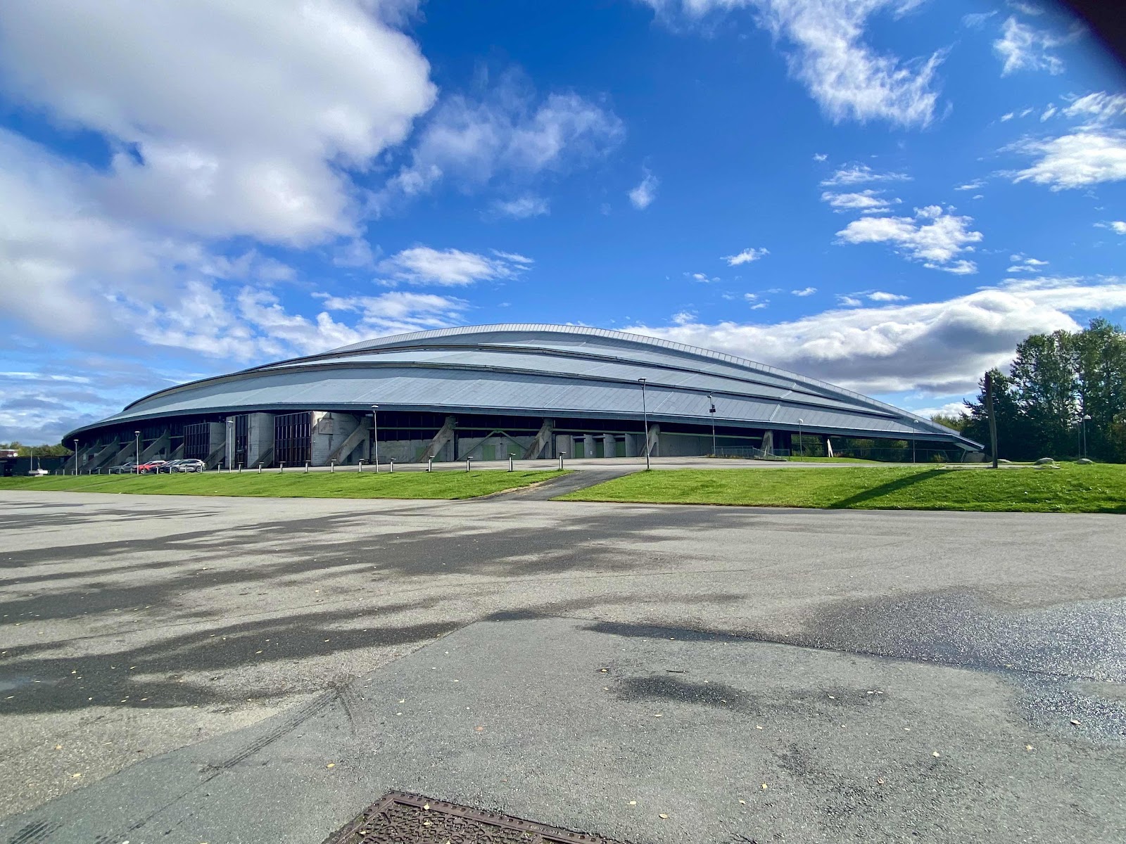 Ja vad vet vi om Hamar, inte mer än att det står en vägskylt som pekar mot Hamar när man kommer upp på Sälenfjället och att det Norska kungahuset flydde från Oslo mot Hamar när tyskarna invaderade Norge vid krigsutbrottet, pågrund av tyskarnas snabba frammarsch beslutade Drottning Märta att ta barnen och fly genom den uppsatta gränskontrollen vid Elverum och sedan fortsätta flykten de 7 milen i bitande kyla fram till Högfjällshotellet i Sälen. Vi har tänkt att utforska Hamar vid flera tillfällen men det har aldrig blivit av men sagt och gjort nu blev det av. Hamar är en tätort i Norge med ca 30 000 tusen invånare och 1994 var Hamar en av värdorterna under Olympiska spelen i Lillehammer. Vi besökte den spektakulära byggnaden Vikingaskeppet som inte är ett skepp utan en inomhushall för skridskor och hallen invigdes ni samband med OS -94 då var hallen den enda bandybanan inomhus förutom hallarna i Ryssland, modernt med andra ord. tyvärr var hallen inte öppen men den är vacker att beskåda utanför. Vi tog oss in till centrum för lite mat och för att flanera en stund utmed strandpromenaden.