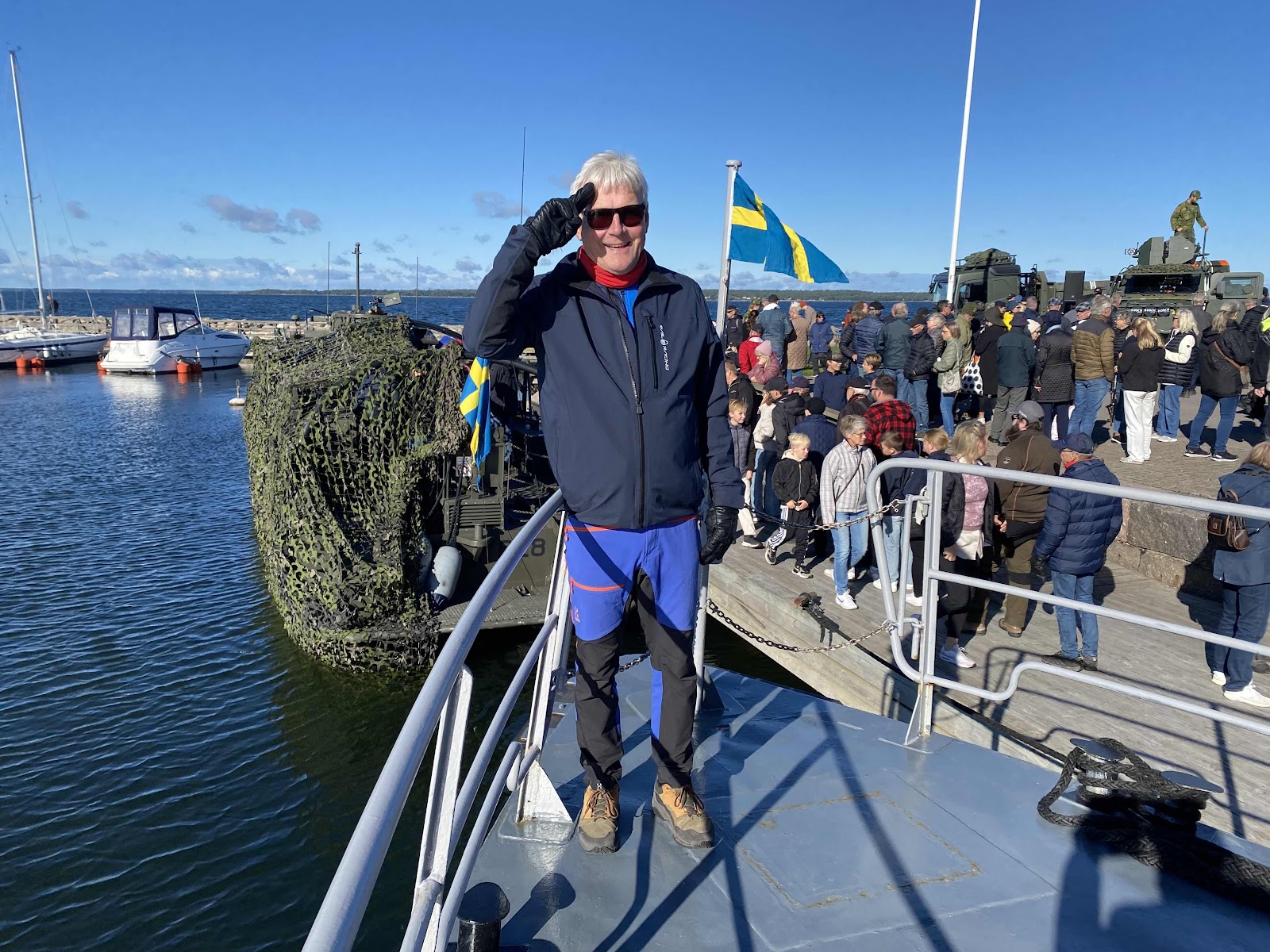 Under Skördefesten på Öland har alltid totalförsvaret en dags aktivitet i hamnen i Stora Rör. I lördags samlades över 40 militära förband, myndigheter och organisationer med fokus på både det militära och civilförsvaret. Vi fick både gå ombord på stridsbåt 90 som låg vid hamn och stridsfordon 90, morgonen startade med fallskärmshoppning och kände man sig manad kunde man få ta en helikopter tur över sundet och ön, vi gjorde inte det… ett seminarium anordnades av Folk och Försvar på temat Sverige i Nato - vad väntar nu? Med deltagare som Överste Håkan Sköld. Medan vi gick där och strosade kom ett öronbedövande ljud över Stora rörs hamn eller det var nog över hela Öland, det var JAS 39 Gripen som hade flygplansuppvisning och nu gällde det att hänga med i alla turer för rätt som det var så försvann planet för att på en sekund dyka upp från oväntat håll och därefter kom ljudet som fullkomligt exploderade. En tanke som infann sig när vi gick där i hamnen måtte vi aldrig behöver möte varken stridsfordon eller ta skydd från för bombande flygplan.