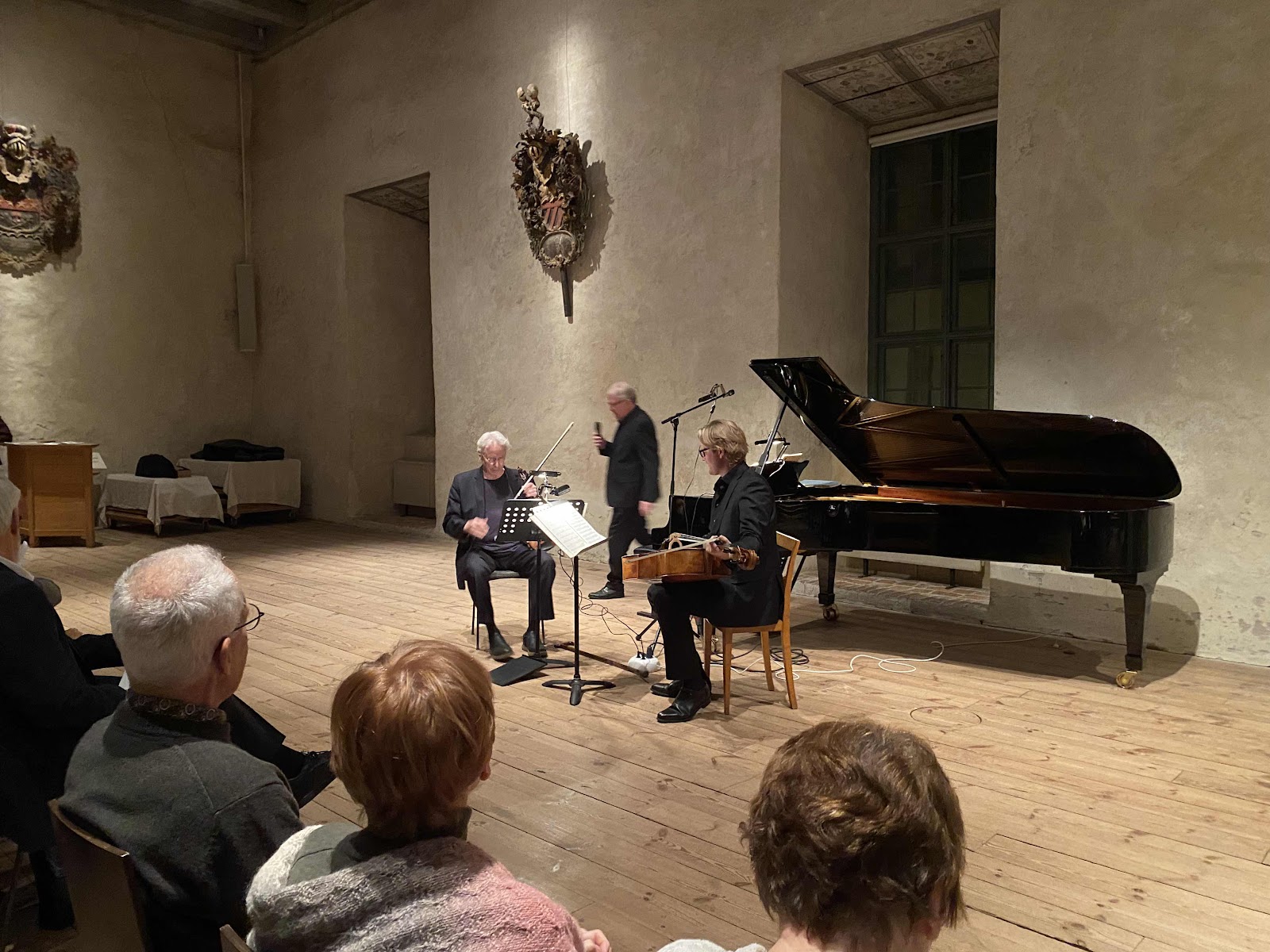 Förra veckan var vi på konsert i Gröna salen på Kalmar slott, vad passar väl bättre än kammarmusik i slottsmiljö. Underbarnen som pianisten påtalade var inte de tre musikanterna som spelade utan det var de tre styckena som de framförde. Vi fick njuta av tre fantastiska musiker med gedigen utbildning och erfarenhet Nils- Erik Sparf som spelar i Uppsala Kammarorkester, Erik Wahlgren som är grundare till Vamlingbokvartetten och så Mats Jansson som bl.a undervisar på Örebro universitet. De här fantastiska musikerna framförde ett par stycken av det första underbarnet Wolfgang Amadeus Mozart, därefter ett stycke av Lili Boulanger och till sist  fem stycken av Erich Wolfgang Korngold som skrev Pianotrio D- dur op.1 när han var 13 år. Ja så visst kan man väl kalla alla tre för underbarn och framför allt så var det väldigt vacker musik i vacker miljö