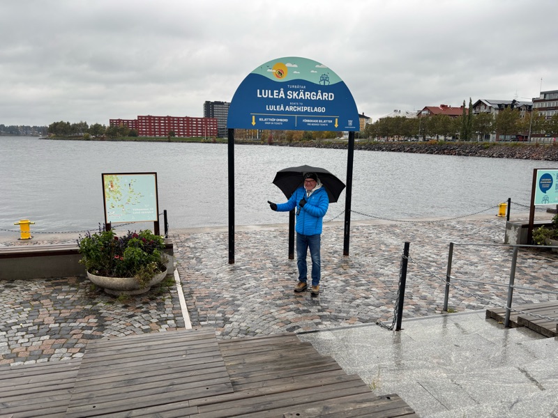 Då börjar Norrlandsresan lida mot sitt slut och sista anhalten var Luleå innan hemfärd. Det var ett små disigt och lite regnigt Luleå som kanske inte visade sig från sin bästa sida, jag bodde i Luleå för 50 år sedan så maken tyckte att jag skull guida runt och visa var jag höll till. 50 år sätter så klart sin spår i utvecklingen och jag kunde inte hitta några som helst likheter med tiden i mitten på 70 talet, så vi fick glatt traska runt lite på måfå i blåsten. Efter att ha spanat efter norrsken i Kiruna utan resultat så visade Luleå upp en vacker bild av de grön fladdrande ljuset på himlen, så det var en fantastisk avslutning på en resa i vårt vackra avlånga land.