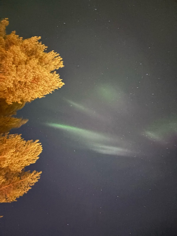 Temperaturen sjönk med ett par grader och stjärnorna visade upp hela sitt register på himlavalvet, då får vi ett mess från sonen - norrsken nu. Mycket riktigt där långt bort i norr spelar det magiska gröna ljuset över himlen, så hade vi varit längts upp på norra Öland fritt från all bebyggelse eller kanske utmed den Östra kusten så hade nog vyn varit i magisk. Det var helt vindstilla och så där härligt krispigt som det är när temperaturen sjunker. Vi tog iallafall på oss och gick ut på spaning och fick väl ett par ok foto. Det är något visst med det där gröna ljuset som dansar runt bland Karlavagnen och Orions bälte.