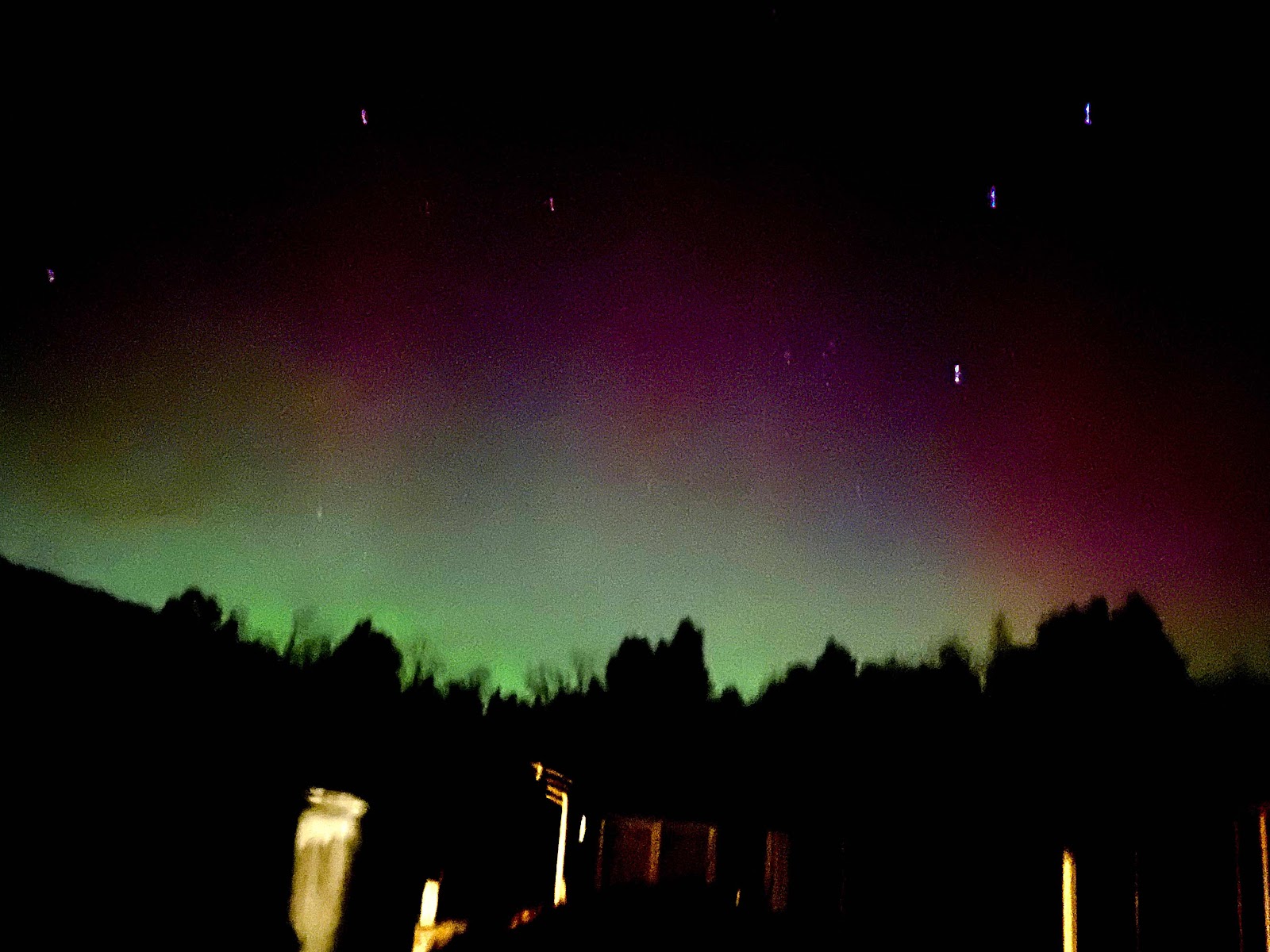 Nu är jag så trött på att vara sjuk, innan jul låg jag i feber i åtta dagar bara feber ingen snuva och tack å lov ingen hosta. Sen var vi förvisso i Stockholm över julen och i en riktig smittohärd med barn och barnbarn. Efter det var jag riktigt nöjd med att jag hade klarat mig men efter att maken har kraxat som en kråka ett par dagar så skickade han på mig ett par eländiga basselusker som återigen har åsamkat feber oh dessutom en riktigt jäkla förkylning från Hell. Nej, nu börjar jag tröttna på det här eländet som tur var kunde vi pälsa på oss och sticka näsan utanför husknuten för att spana in det vackra norrskenet som spelade i norr, förvisso var det inte de gröna slöjorna som dansar på himlen, men i den krispiga vinterkvällen som var stjärnklar så fick vi se härliga skiftningar på himlen, så vad är väl en bal på slottet när man är snuvig och få se det vackra norrskenet i byn.