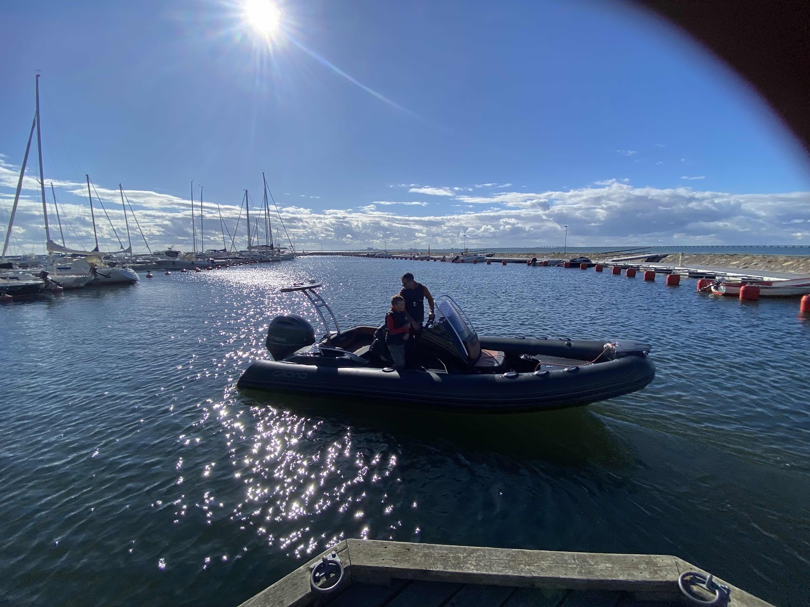 Jag kan säga att den här gången gick det betydligt enklar än när segelbåten var klar för sjösättning. Med den här lilla båten så är det bara att rulla ner båtvagnen för rampen och sedan dra båten stilla och lugnt ner i dess rätta element. Jag gjorde inte speciellt mycket nytta, höll i en tamp så att båten i fördes ut i havet av vinden sen tog sonen och barnbarnet över och såg till att allt var i sin ordning att det sprutade kylvatten ur motorn och alla instrument funkade. 15 grader i havet ropade sonen innan det var dags för årets första provtur ut i sundet, visserligen var solen framme men det blåste lite väl mycket så det blev en liten tur utanför hamnen, innan båten hamnade på sin plats i hamnen.
