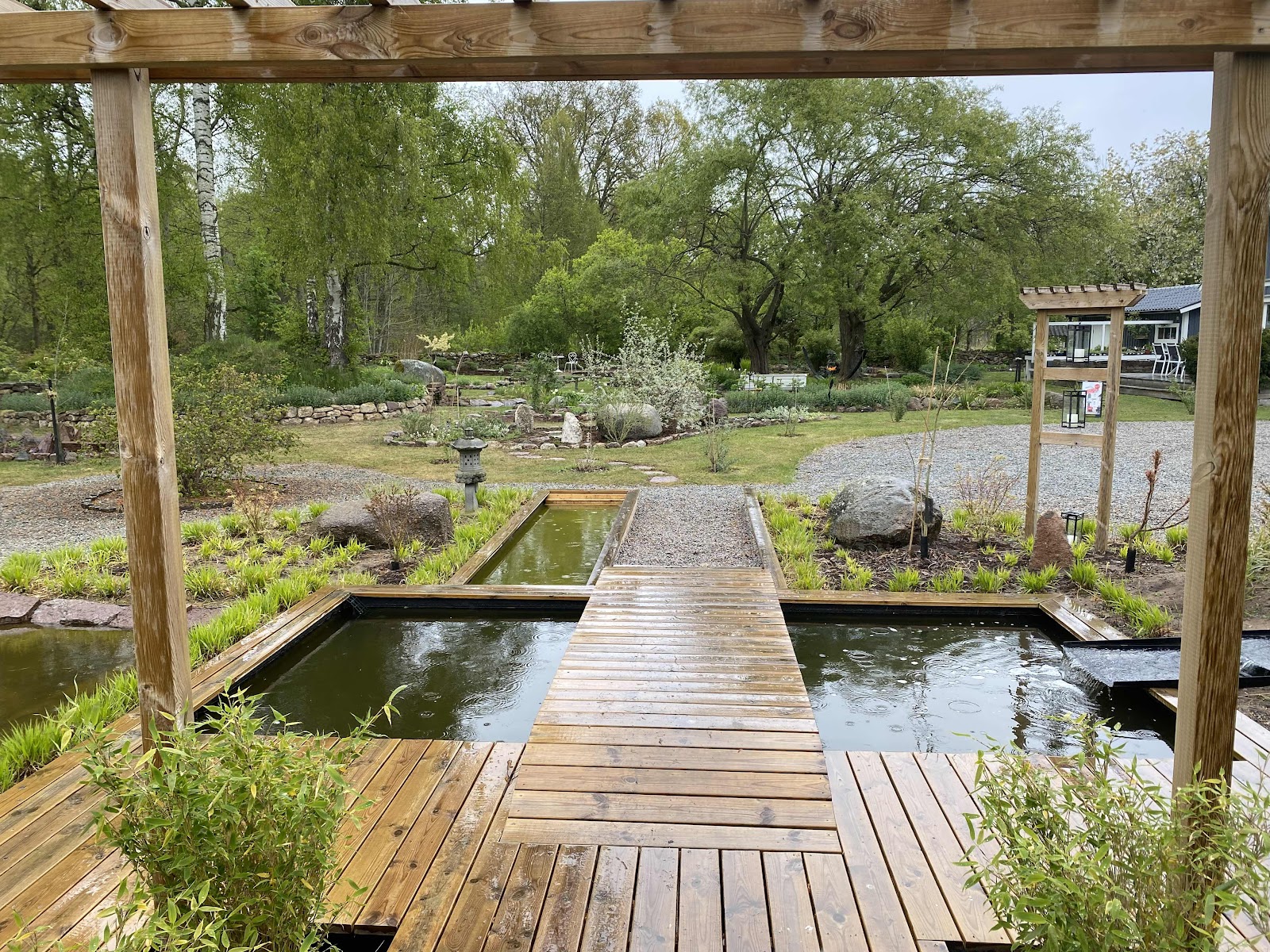 Trädgården är hem för exotiska växter och träd som trivs i Ölands klimat, samt vattenelement som dammar och vattenspeglar som skapar en rofylld atmosfär. Inom området finns även Galleri Glasboden, där Joels glaskonst visas och säljs. Trots det idoga regnandet så var det en upplevelse att vandrar runt både i så väl den Japanska som den Engelska Parken.