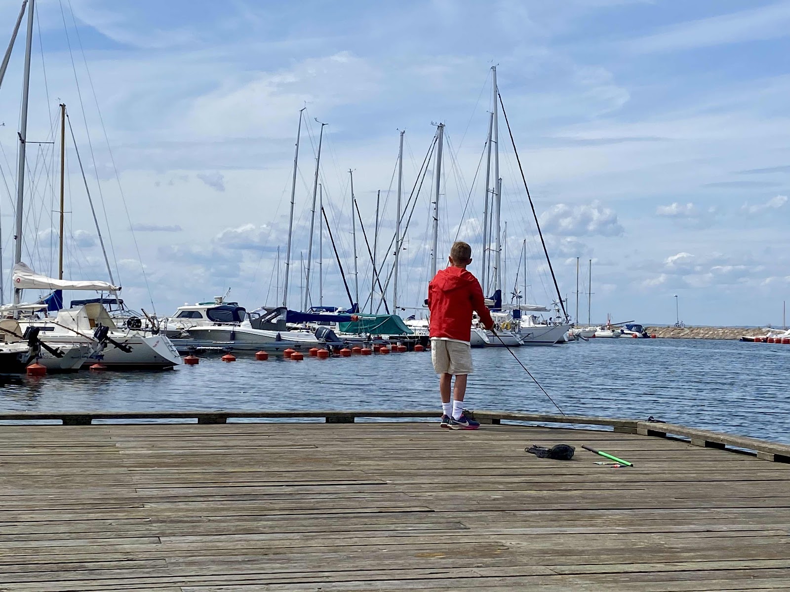 Vi fick ett samtal från barnbarnet -Farfar kan vi åka och meta ? Ja vad svarar man på det, inte nej iallafall så det fick bli en snabb lunch och kaffebryggning i ett huj innan vi for i väg till Färjestadens hamn. Solen strålade härlig och klar men den rackans vinden tilltog i styrka så framåt eftermiddagen var det kuling i byarna. Fast den sanna fiskaren bryr sig väl inte om lite vind, bara gäddorna leker i vik och vass om man man nu får tro sången om Sjöbloms dass. Hur som helst så åkte metspön fram och ur ryggan plockades fejk mask fram och därefter var det bara att se hur flötet guppade upp och ner helst ner förståss för då var de små fiskarna där och naffsade. Trots förflyttning på brygg och pir för att hitta fiskelycka så blev det ingen vidare fångst, så vi tog en paus och köpte glass och den nya trenden som kommit till Färjestaden - Jordgubbar varm nutella toppad med grädde och Smarties, riktig mumsig faktiskt, barnbarnet tog två kulor chokladglass i bägare toppad med mjukglass. Så alla blev nöjda även om vi int fick med oss någon abborre hem.