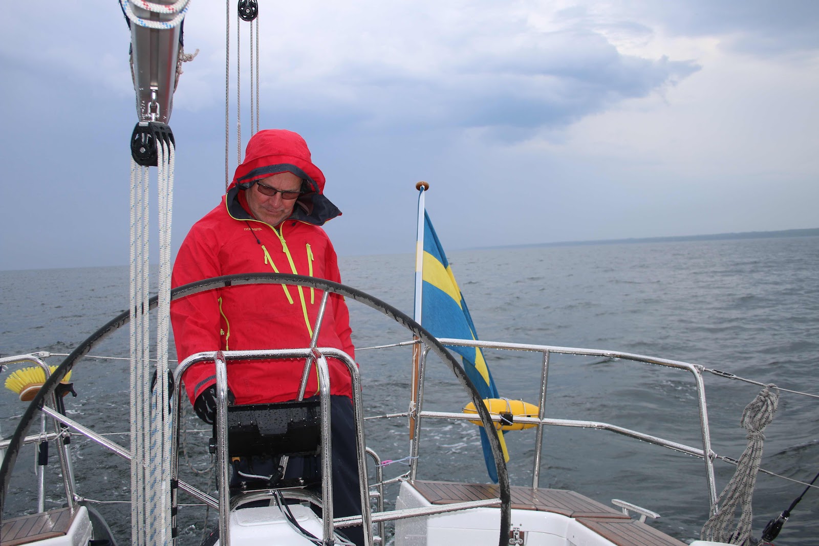 När det är som varmast och hettan fullkomligt dallrar och vinden fullkomligt mojnat, ja då suktar man efter lite regn och svalka. Innan man har tänkt tanken klar om hur behövligt det skulle vara me lite regn så öppnar sig himlen och det fullkomligt vräker ner regn. Jag tömde vattenmätaren i går morse och då hade det kommit 40 mm och under dagen i går kom det minst 10 mm till, men så har det också varit orange varning för höga vattenflöden. Gräsmattan ändrade färg från brunbränd stäpp till vackert grön igen och buskarna reser på sig igen efter att ha hängt och fullkomligt suktat efter vatten. Här på Öland har vi bevattningsförbud så det gäller att inte slösa på de värdefulla dropparna. Jag var iallafall tacksam över att vi inte satt i segelbåten den här gången för det har hänt både en och två gånger att himlen har öppnat sig, men efter regn kommer solsken.