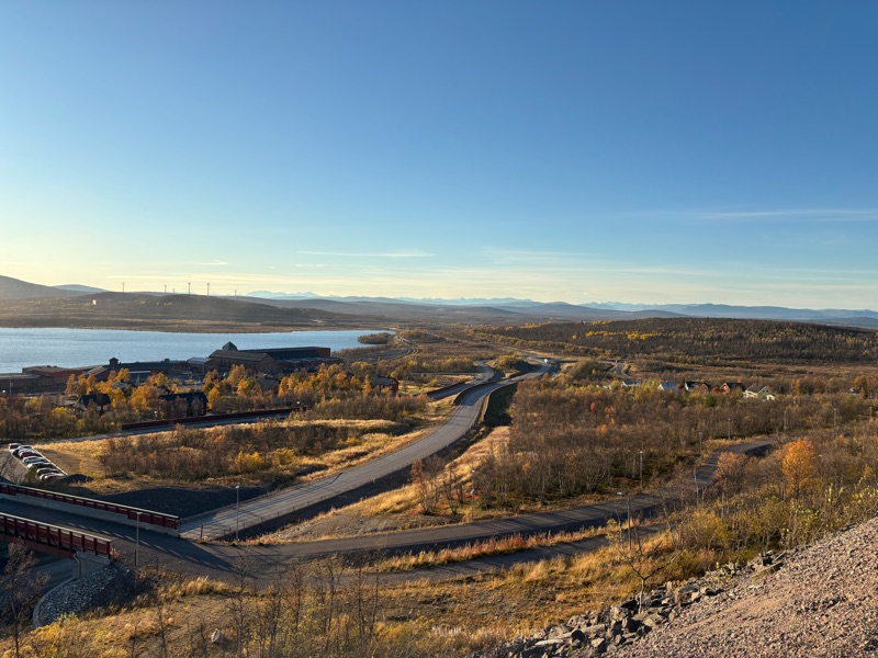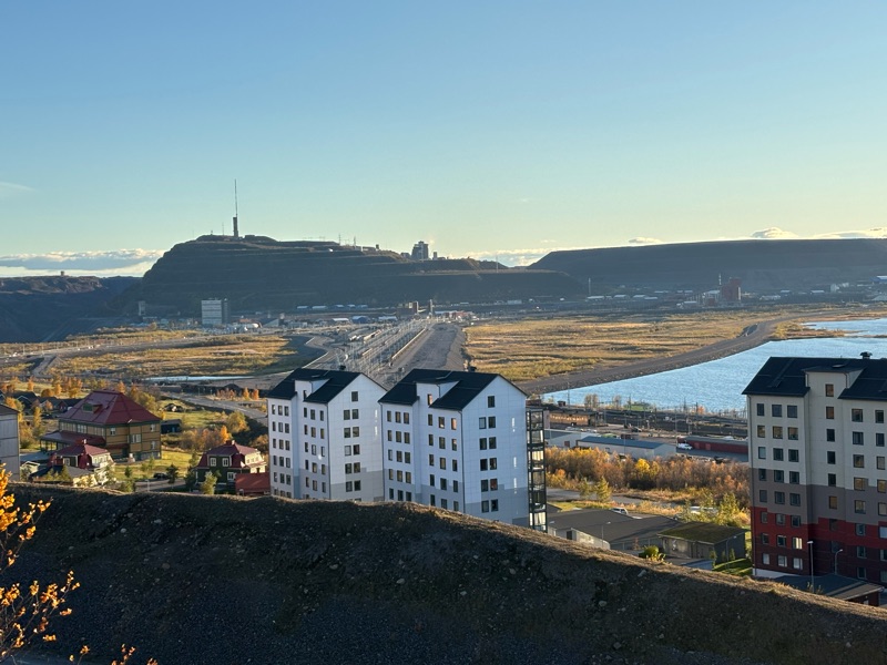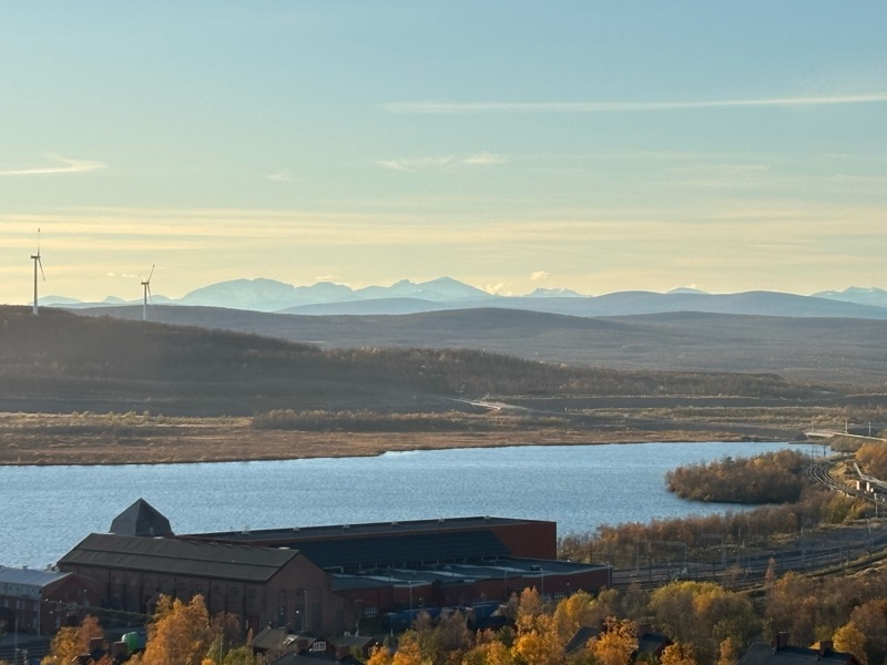 Ja vad skall man säga om denna vackra plats med omgivande magiska fjäll. Kiruna är en ung stad i svensk historia som grundades år 1900. Staden växte snabbt fram tack vare järnmalmsbrytningen i Malmfälten. Kiruna ligger norr om polcirkeln, vilket gör vintrarna långa och ljusa somrarna blir så klart korta med midnattssolen som lyser över fjällen under och skapar magiska nätter. På vintern dansar norrskenet över himlen i gröna och rosa skiftningar, tyvärr fick vi inte så något av detta lite retligt är det allt att norrsken kunde beskådas över Öland de här dagarna. Torneträsk, en av Sveriges största fjällsjöar, ligger nära staden och här finns också Kebnekaise, Sveriges högsta berg, inom räckhåll. Naturen ligger inpå knutarna men nu pågår en gigantisk ombyggnad av staden, hus som flyttas eller rivs för att ge plats för gruvdriften. Jag vet inte vad man skall säga om detta.